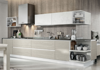 In tutti gli appartamenti della Residenza Lupa verranno installate le cucine Homecucine, dallo stile moderno, elegante ma accogliente.